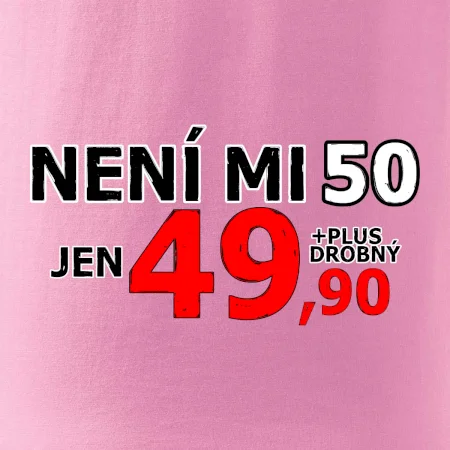 Triko s motivem "Není mi 50, jen 49,90 plus drobný". Narozeninové triko pro oslavence, který oslaví jubileum 50 let, ale připadá si mladší. Dárek k padesátinám. Triko k padesátým narozeninám.