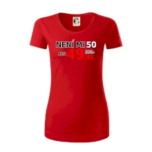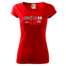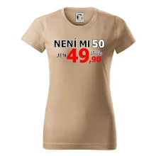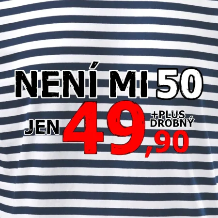 Triko s motivem "Není mi 50, jen 49,90 plus drobný". Narozeninové triko pro oslavence, který oslaví jubileum 50 let, ale připadá si mladší. Dárek k padesátinám. Triko k padesátým narozeninám.