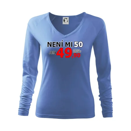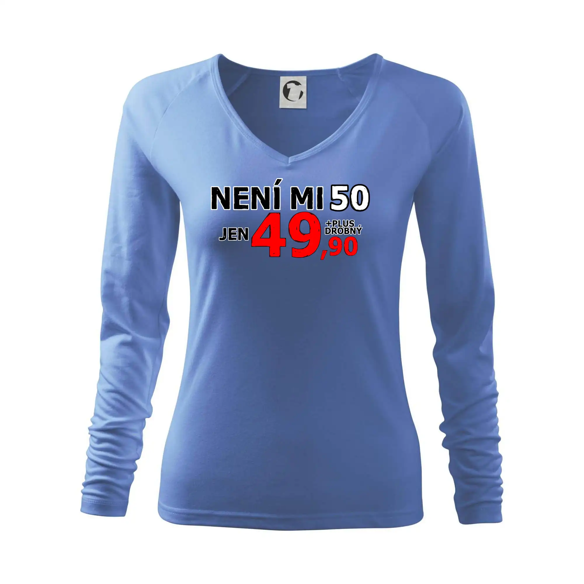 Triko s motivem "Není mi 50, jen 49,90 plus drobný". Narozeninové triko pro oslavence, který oslaví jubileum 50 let, ale připadá si mladší. Dárek k padesátinám. Triko k padesátým narozeninám.