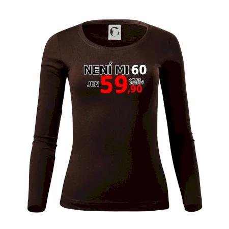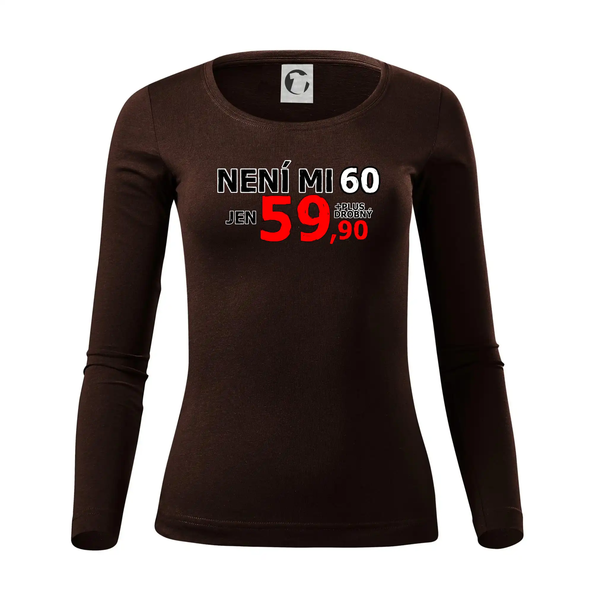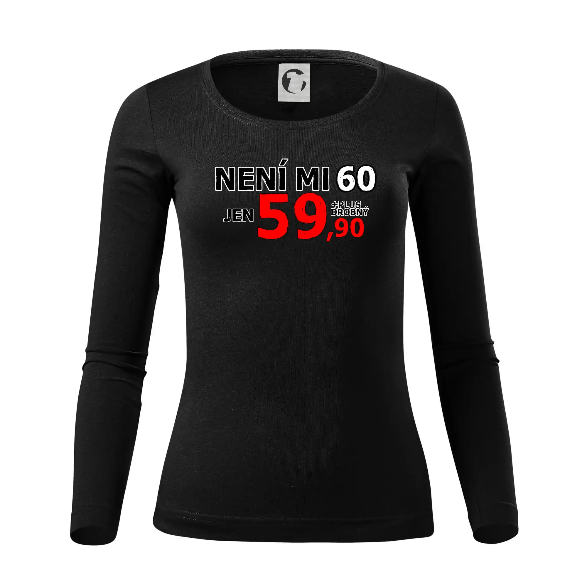 Triko s motivem "Není mi 60, jen 59,90 plus drobný". Narozeninové triko pro oslavence, který oslaví jubileum 60 let, ale připadá si mladší. Dárek k šedesátinám. Triko k šedesátým narozeninám.