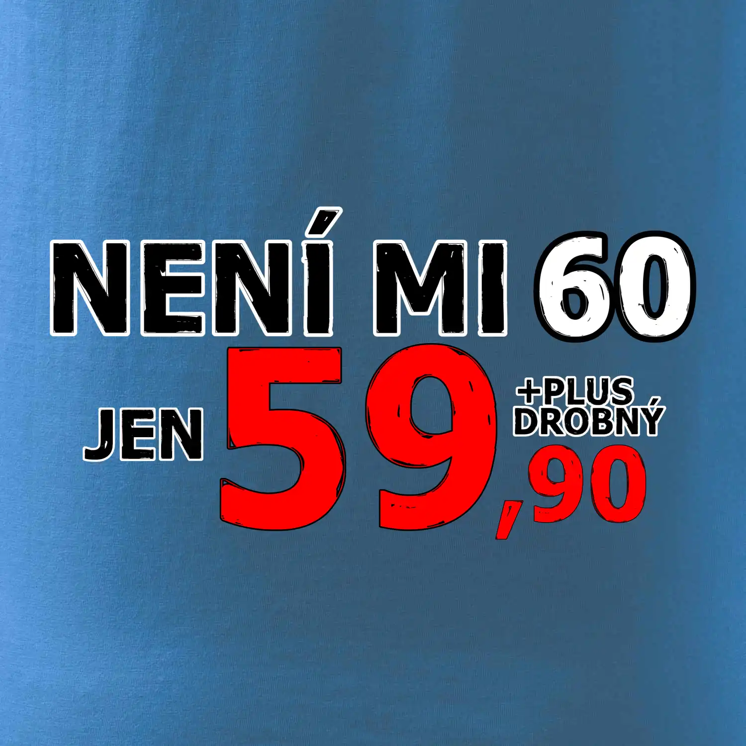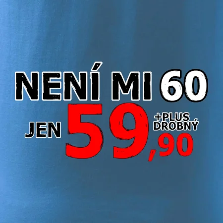 Triko s motivem "Není mi 60, jen 59,90 plus drobný". Narozeninové triko pro oslavence, který oslaví jubileum 60 let, ale připadá si mladší. Dárek k šedesátinám. Triko k šedesátým narozeninám.