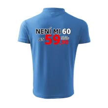 Triko s motivem "Není mi 60, jen 59,90 plus drobný". Narozeninové triko pro oslavence, který oslaví jubileum 60 let, ale připadá si mladší. Dárek k šedesátinám. Triko k šedesátým narozeninám.