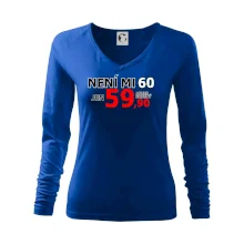 Triko s motivem "Není mi 60, jen 59,90 plus drobný". Narozeninové triko pro oslavence, který oslaví jubileum 60 let, ale připadá si mladší. Dárek k šedesátinám. Triko k šedesátým narozeninám.