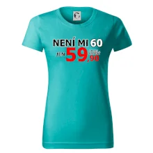 Triko s motivem "Není mi 60, jen 59,90 plus drobný". Narozeninové triko pro oslavence, který oslaví jubileum 60 let, ale připadá si mladší. Dárek k šedesátinám. Triko k šedesátým narozeninám.