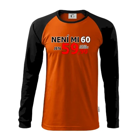 Triko s motivem "Není mi 60, jen 59,90 plus drobný". Narozeninové triko pro oslavence, který oslaví jubileum 60 let, ale připadá si mladší. Dárek k šedesátinám. Triko k šedesátým narozeninám.