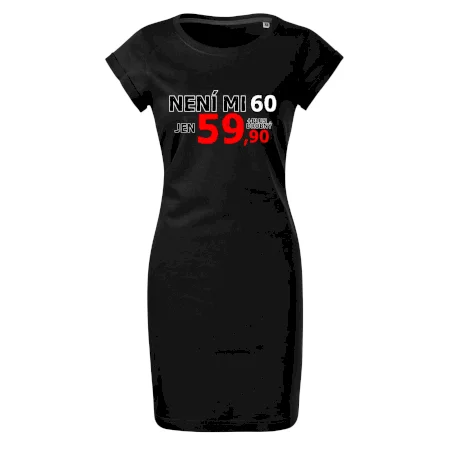 Triko s motivem "Není mi 60, jen 59,90 plus drobný". Narozeninové triko pro oslavence, který oslaví jubileum 60 let, ale připadá si mladší. Dárek k šedesátinám. Triko k šedesátým narozeninám.