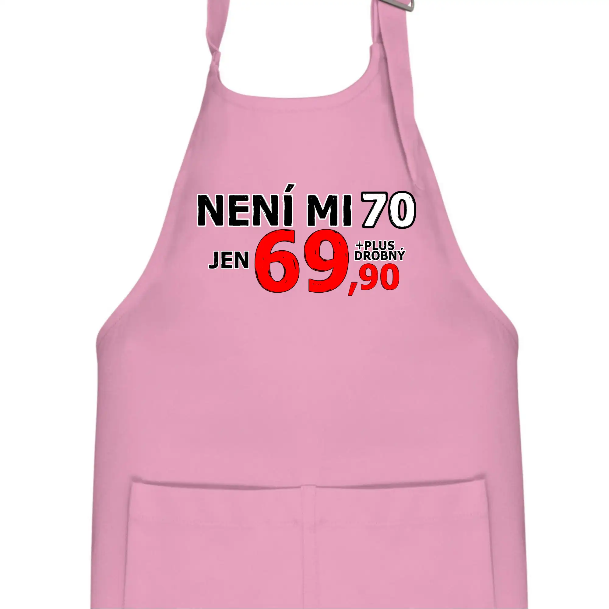 Triko s motivem "Není mi 70, jen 69,90 plus drobný". Narozeninové triko pro oslavence, který oslaví jubileum 70 let, ale připadá si mladší. Dárek k sedmdesátinám. Triko k sedmdesátým narozeninám.