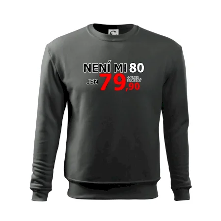 Triko s motivem "Není mi 80, jen 79,90 plus drobný". Narozeninové triko pro oslavence, který oslaví jubileum 80 let, ale připadá si mladší. Dárek k osmdesátinám. Triko k osmdesátým narozeninám.