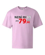 Triko s motivem "Není mi 80, jen 79,90 plus drobný". Narozeninové triko pro oslavence, který oslaví jubileum 80 let, ale připadá si mladší. Dárek k osmdesátinám. Triko k osmdesátým narozeninám.