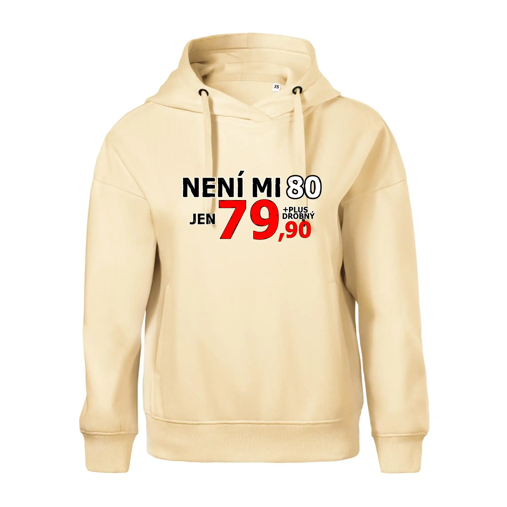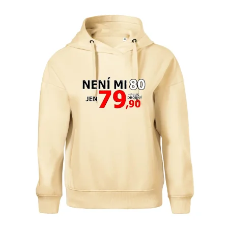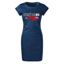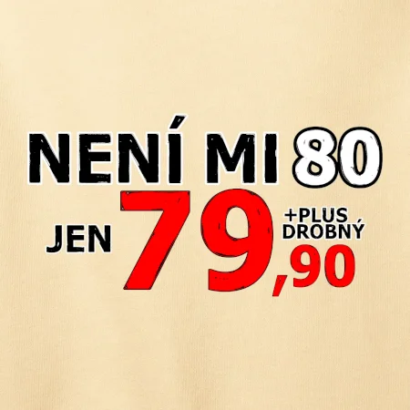 Triko s motivem "Není mi 80, jen 79,90 plus drobný". Narozeninové triko pro oslavence, který oslaví jubileum 80 let, ale připadá si mladší. Dárek k osmdesátinám. Triko k osmdesátým narozeninám.