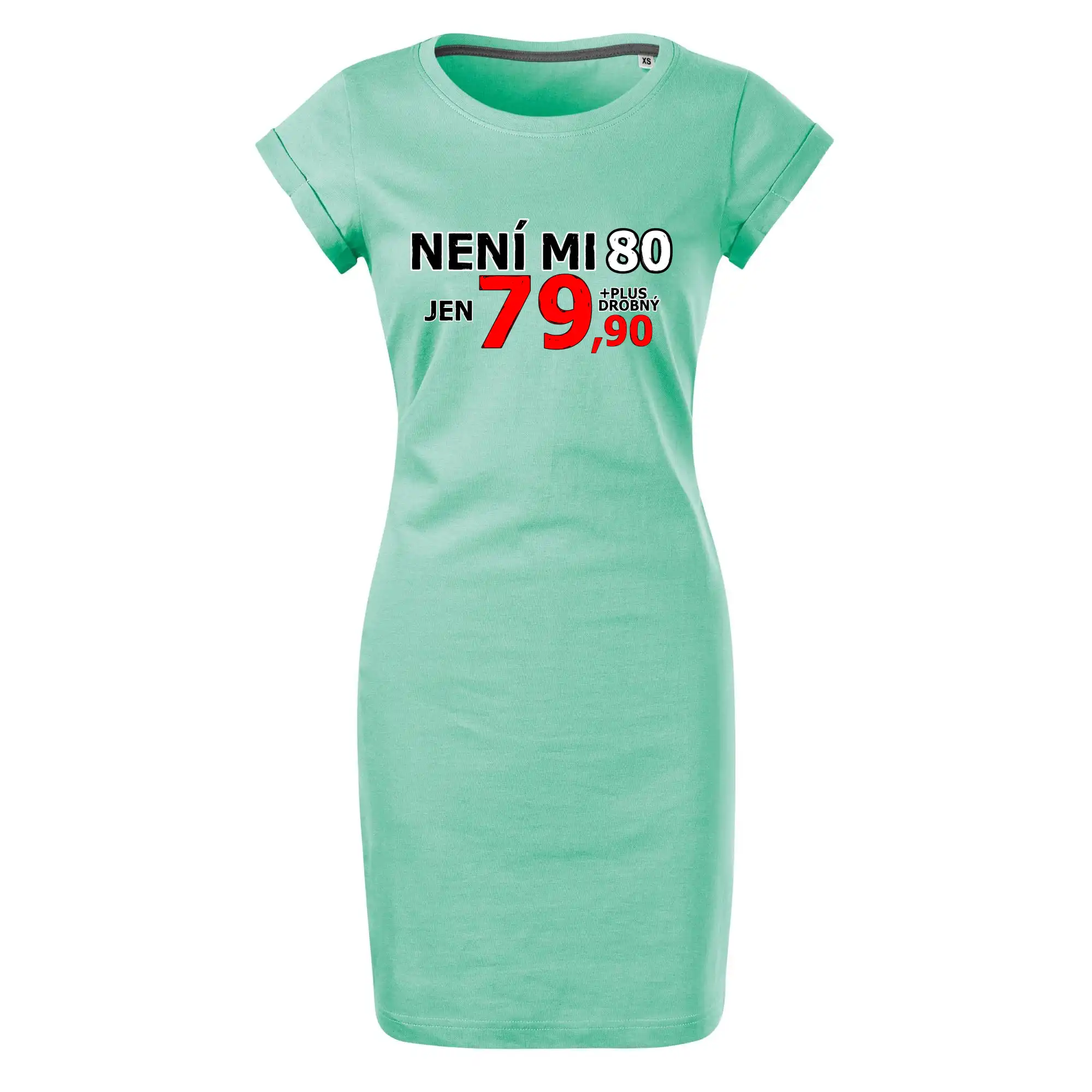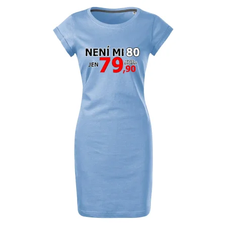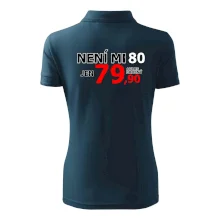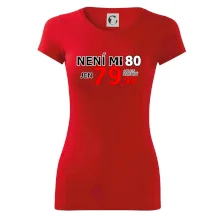 Triko s motivem "Není mi 80, jen 79,90 plus drobný". Narozeninové triko pro oslavence, který oslaví jubileum 80 let, ale připadá si mladší. Dárek k osmdesátinám. Triko k osmdesátým narozeninám.