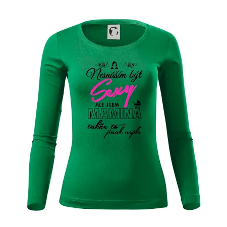 Pro sexy mámy, mamky, maminky i maminy. Tričko s potiskem nesnáším být sexy mamina, ale jinak to nejde, potěší každého se smyslem pro humor.
