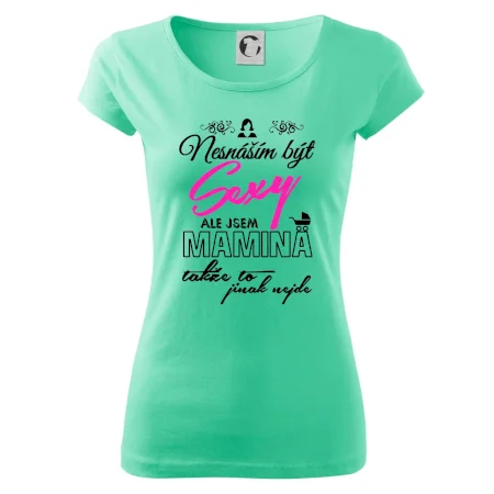 Pro sexy mámy, mamky, maminky i maminy. Tričko s potiskem nesnáším být sexy mamina, ale jinak to nejde, potěší každého se smyslem pro humor.
