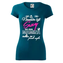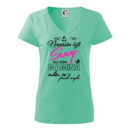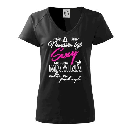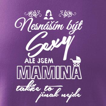 Pro sexy mámy, mamky, maminky i maminy. Tričko s potiskem nesnáším být sexy mamina, ale jinak to nejde, potěší každého se smyslem pro humor.