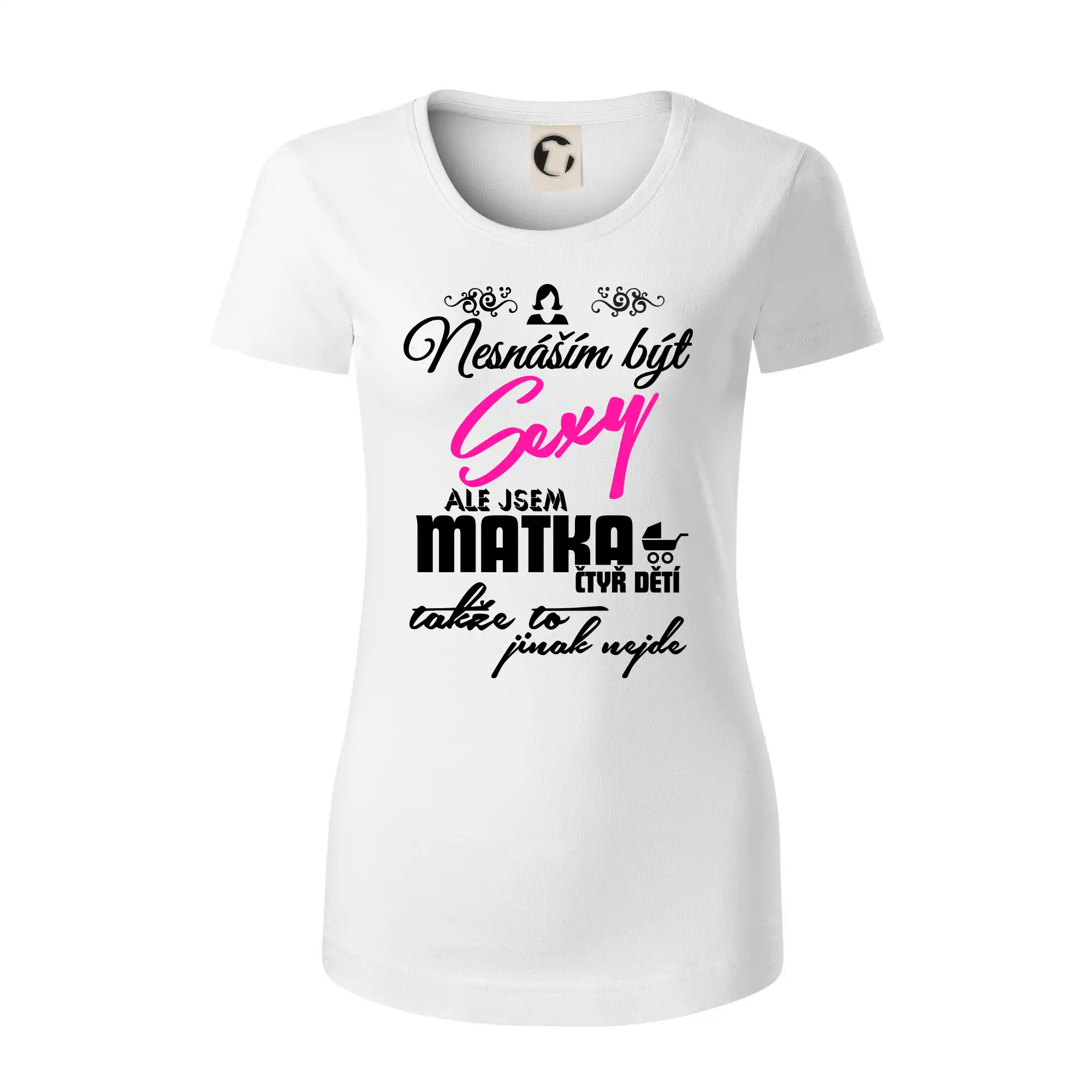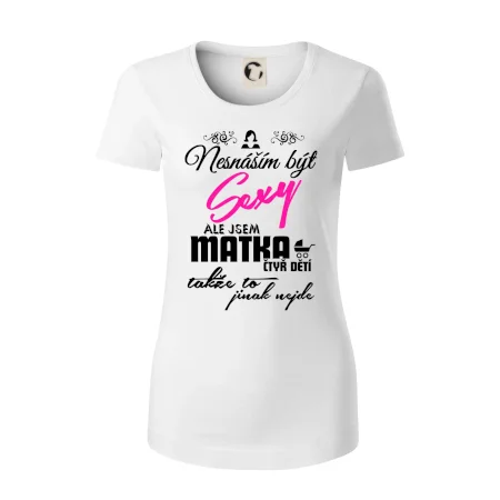 Pro sexy mámy, mamky, maminky i maminy. Tričko s potiskem nesnáším být sexy mamina, ale jinak to nejde, potěší každého se smyslem pro humor.