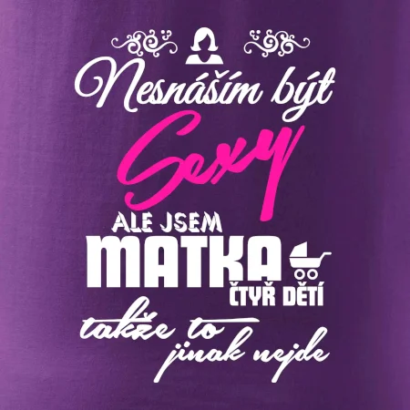 Pro sexy mámy, mamky, maminky i maminy. Tričko s potiskem nesnáším být sexy mamina, ale jinak to nejde, potěší každého se smyslem pro humor.