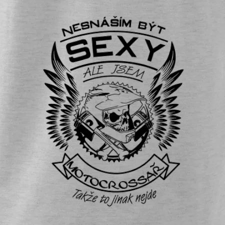 Lesem, polem, bahnem nebo pouští, motocrossař si najde cestu. Pro milovníky motorek je tričko s potiskem "Nesnáším být sexy, ale jsem motocrossák, takže to jinak nejde" skvělým dárkem.