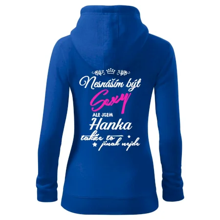 Pořiď si tričko s potiskem nesnáším být sexy, ale jsem "tady bude tvoje jméno". Jméno napište do poznámky k objednávce.