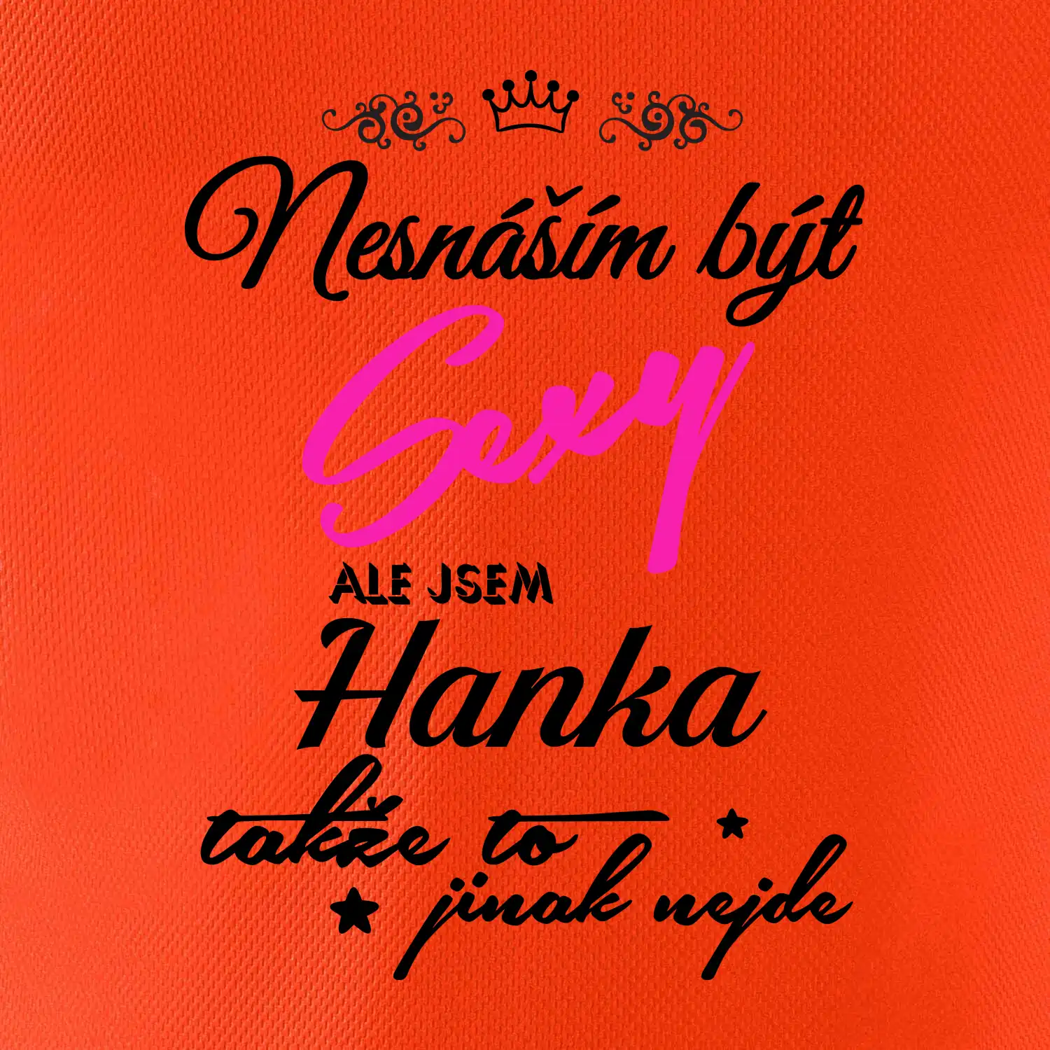 Pořiď si tričko s potiskem nesnáším být sexy, ale jsem "tady bude tvoje jméno". Jméno napište do poznámky k objednávce.