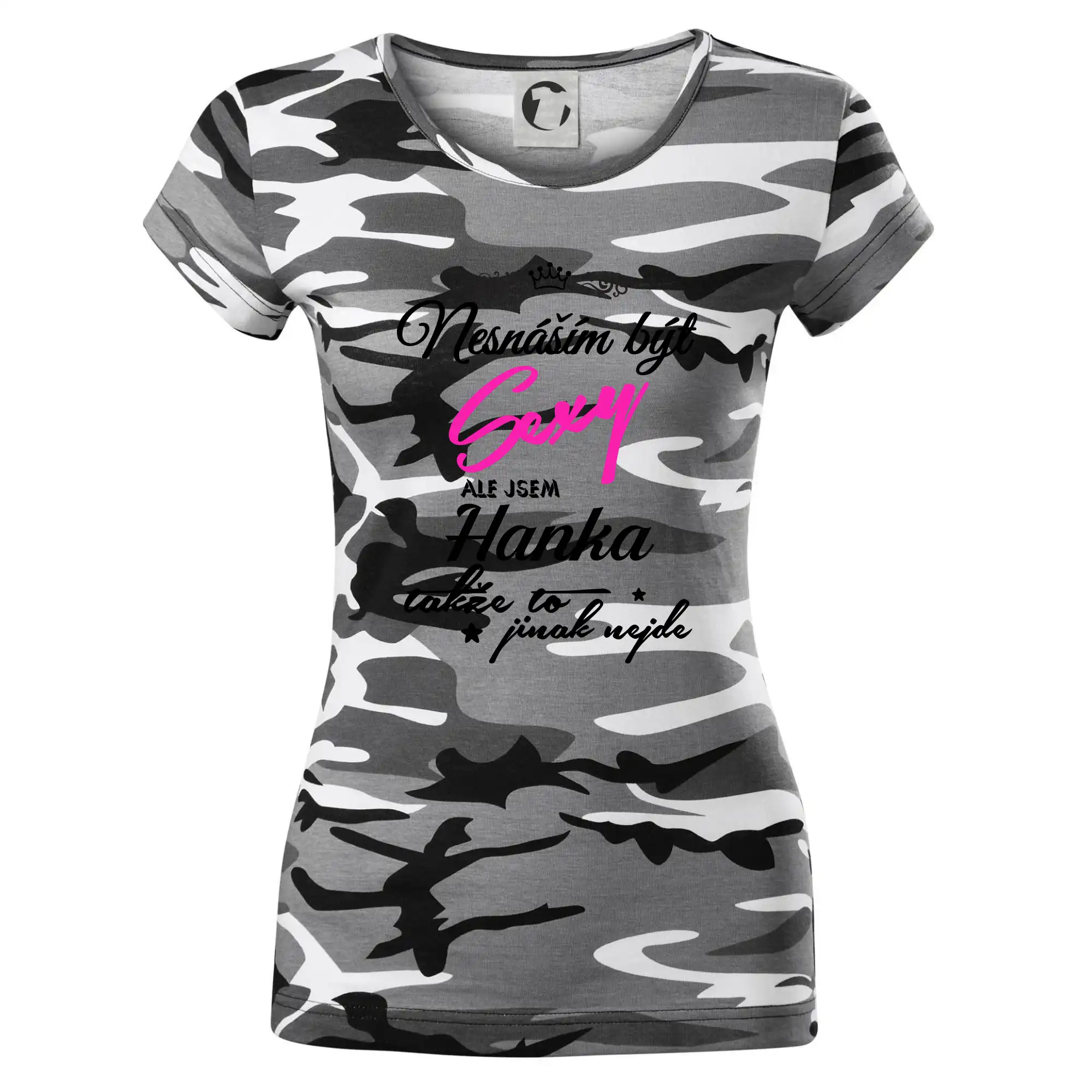 Pořiď si tričko s potiskem nesnáším být sexy, ale jsem "tady bude tvoje jméno". Jméno napište do poznámky k objednávce.