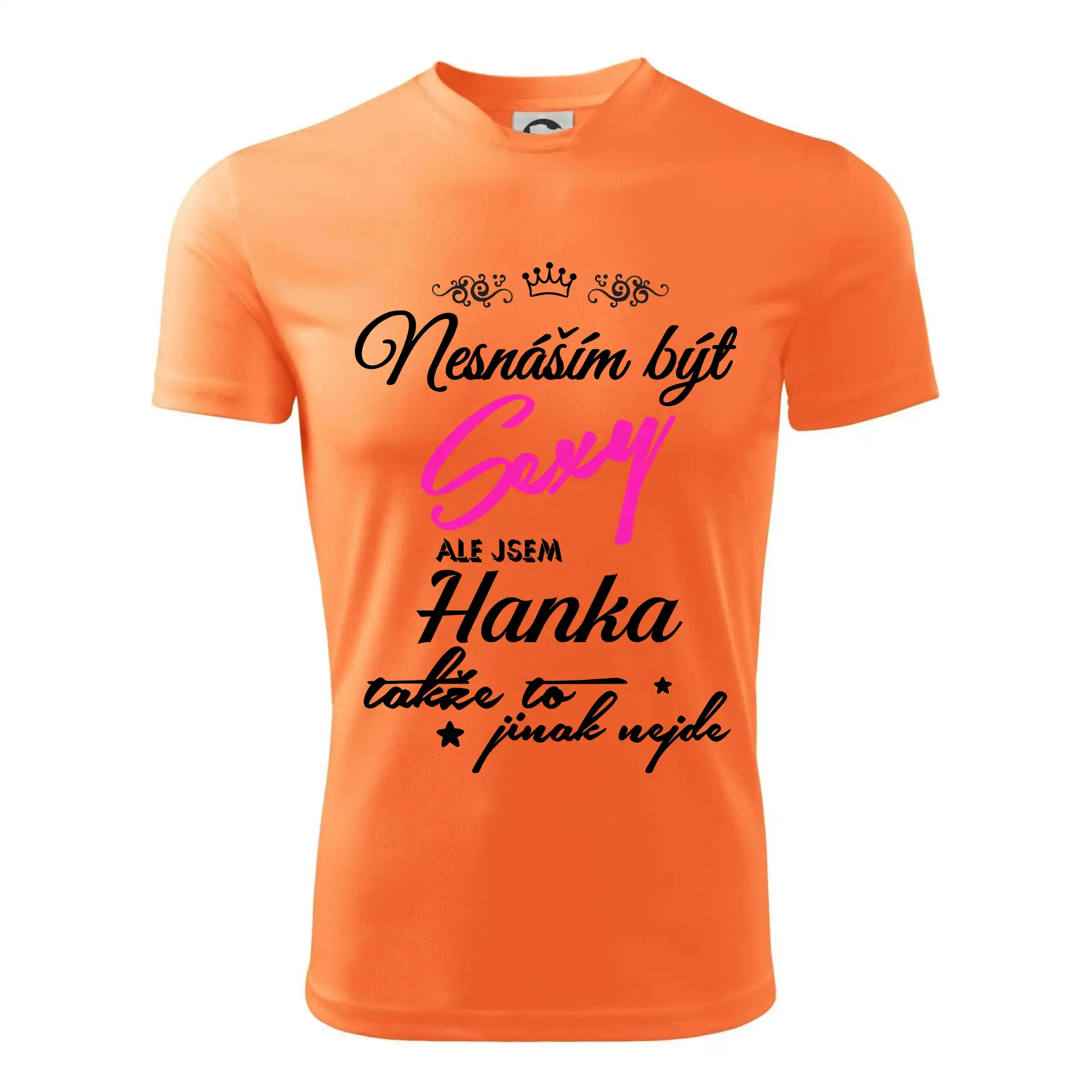 Pořiď si tričko s potiskem nesnáším být sexy, ale jsem "tady bude tvoje jméno". Jméno napište do poznámky k objednávce.