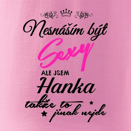 Pořiď si tričko s potiskem nesnáším být sexy, ale jsem "tady bude tvoje jméno". Jméno napište do poznámky k objednávce.
