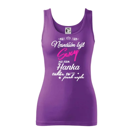 Pořiď si tričko s potiskem nesnáším být sexy, ale jsem "tady bude tvoje jméno". Jméno napište do poznámky k objednávce.