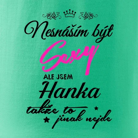 Pořiď si tričko s potiskem nesnáším být sexy, ale jsem "tady bude tvoje jméno". Jméno napište do poznámky k objednávce.