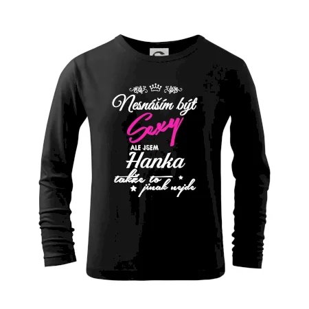 Pořiď si tričko s potiskem nesnáším být sexy, ale jsem "tady bude tvoje jméno". Jméno napište do poznámky k objednávce.