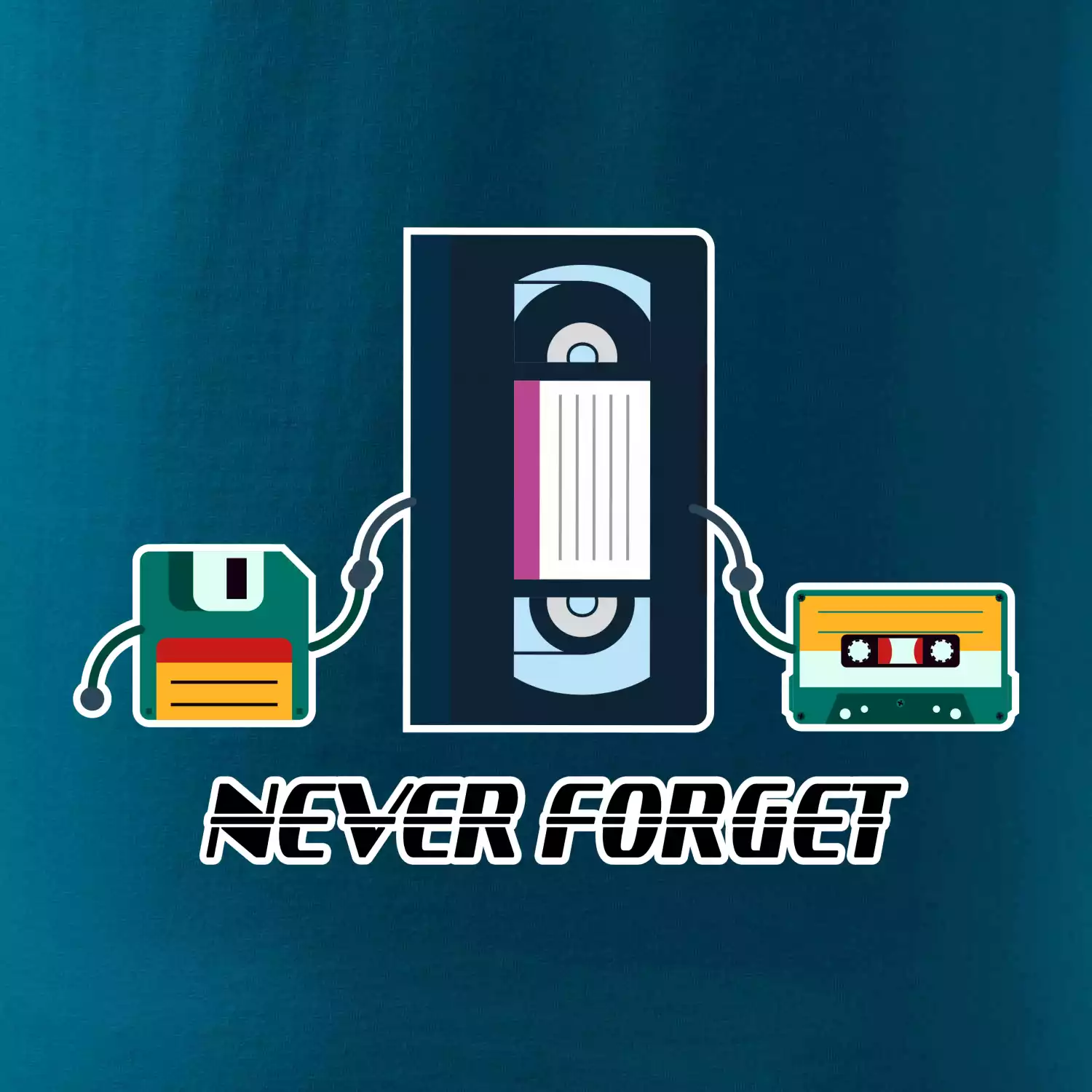 Tričko pro každého správného nostalgika, který má rád retro. Jestli pamatuješ ještě disktety, filmy do foťáku, kazety VHS nebo aspoň CDčka?