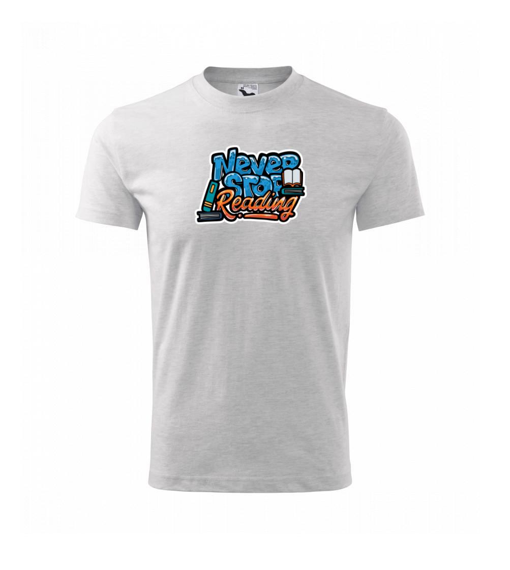 Nikdy nepřestávej číst, pokud si přijdeš v dnešní době s knihou v ruce troušku mimo, nevěš hlavu ba naopak! Pořiď si tohle triko a ukaž všem, že čtení, knihovnictví a znalosti jsou pořád in!