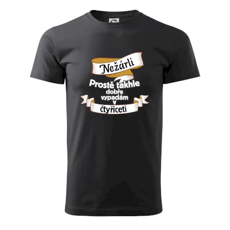 Triko pro pány, kteří slaví čtyřicáté narozeniny, zdobí nápis "Nežárli, prostě takhle dobře vypadám ve čtyřiceti" Je ti čtyřicet a chceš to oslavit s novým trikem? Pak si pořiď tohle triko ke čtyřicátinám. Narozeninové triko ke čtyřicátým narozeninám.