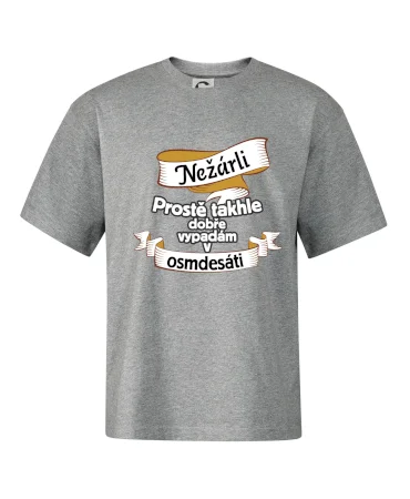 Triko pro pány, kteří slaví osmdesáté narozeniny, zdobí nápis "Nežárli, prostě takhle dobře vypadám v osmdesáti" Je ti osmdesát a chceš to oslavit s novým trikem? Pak si pořiď tohle triko k osmdesátinám. Narozeninové triko k osmdesátým narozeninám.