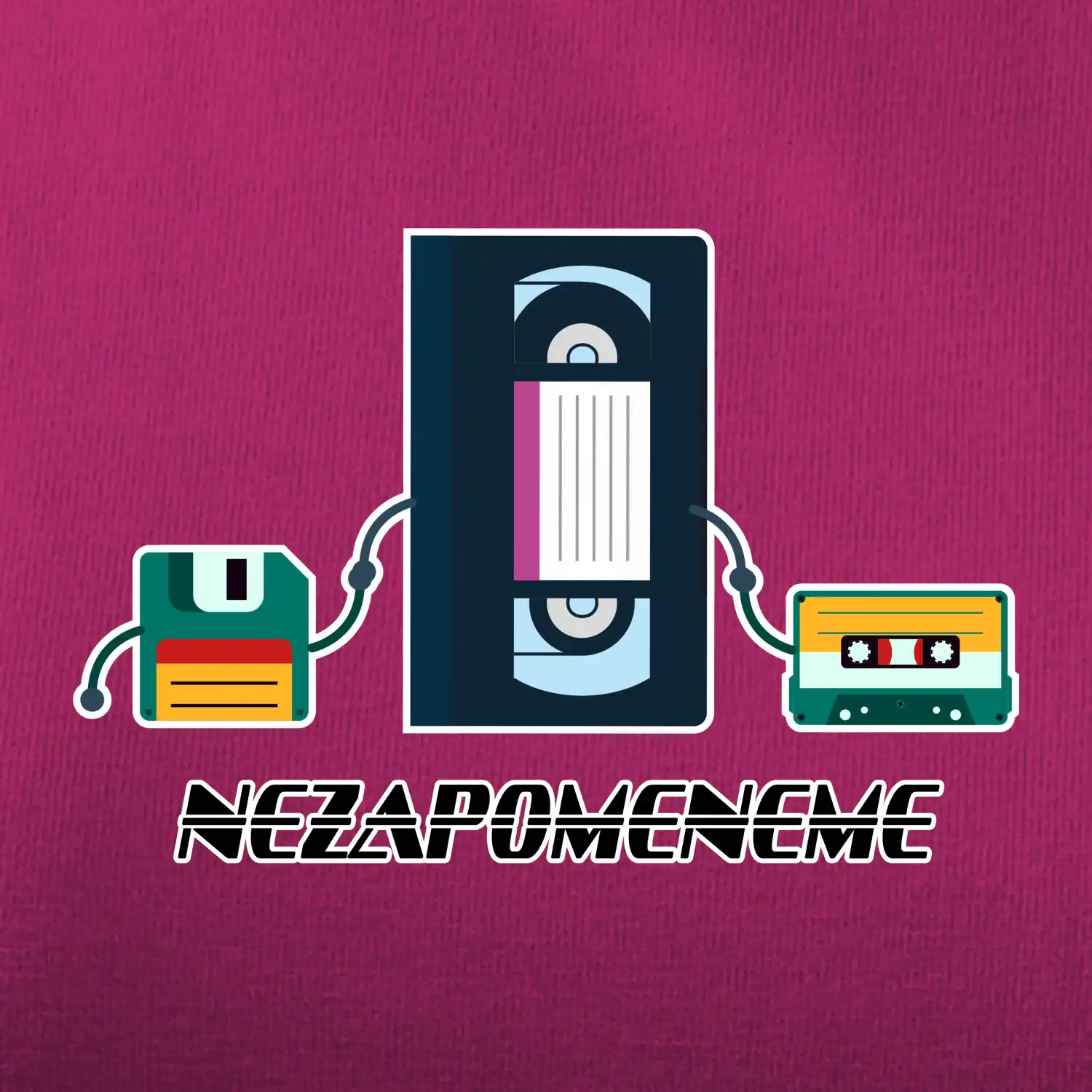 Tričko pro každého správného nostalgika, který má rád retro. Jestli pamatuješ ještě disktety, filmy do foťáku, kazety VHS nebo aspoň CDčka?