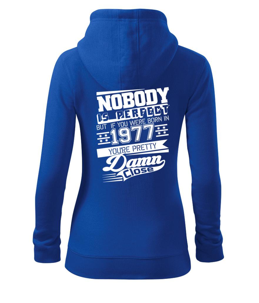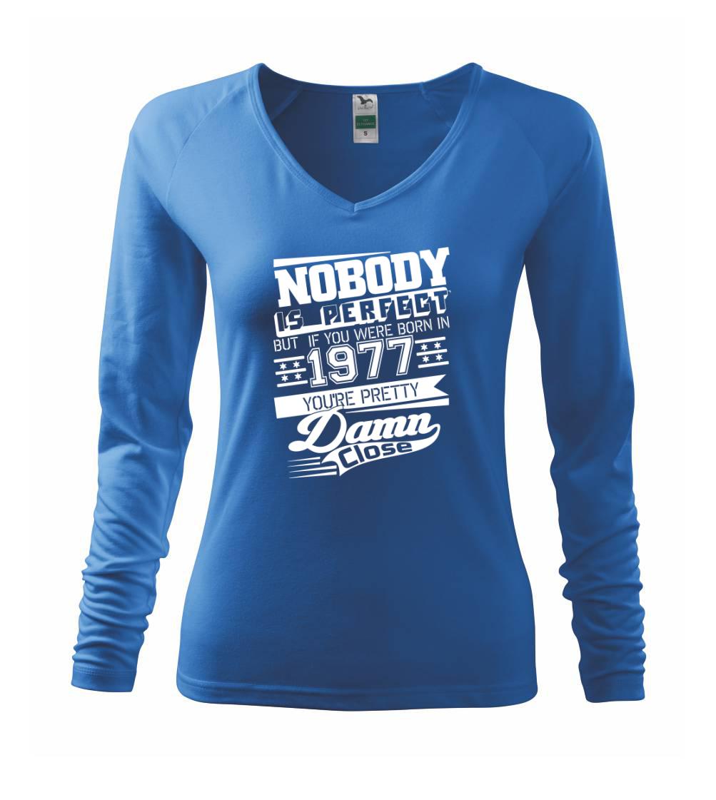 Narozeninové tričko pro ročník 1977. Sháníš originální dárek? Tričko nikdo není dokonalý, ale ty jsi velmi blízko je ten nejlepší dárek, kterým určitě potěšíš.