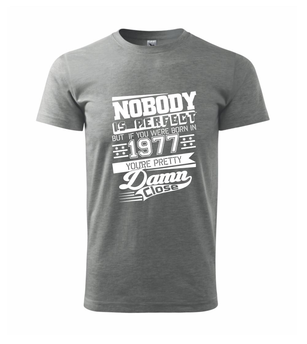 Narozeninové tričko pro ročník 1977. Sháníš originální dárek? Tričko nikdo není dokonalý, ale ty jsi velmi blízko je ten nejlepší dárek, kterým určitě potěšíš.