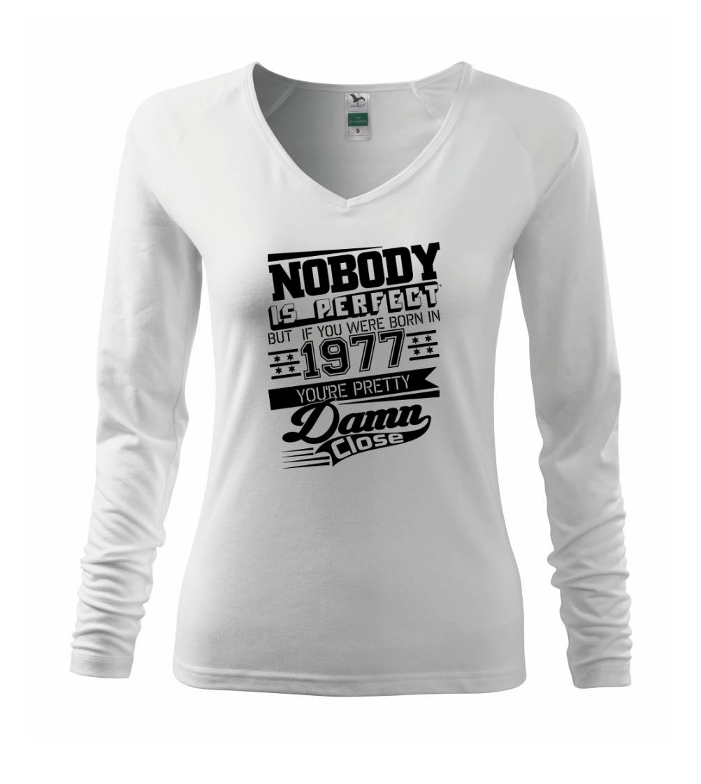 Narozeninové tričko pro ročník 1977. Sháníš originální dárek? Tričko nikdo není dokonalý, ale ty jsi velmi blízko je ten nejlepší dárek, kterým určitě potěšíš.