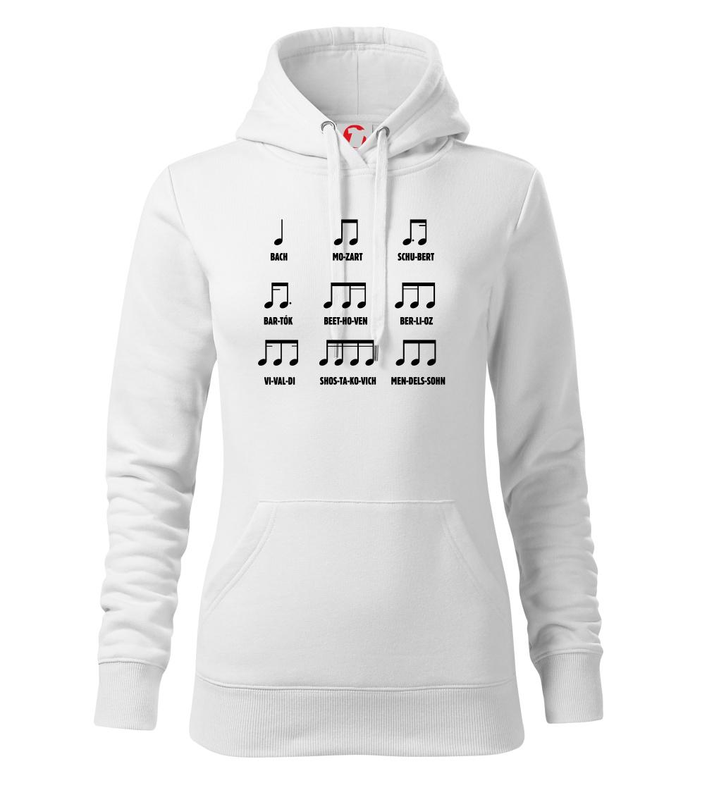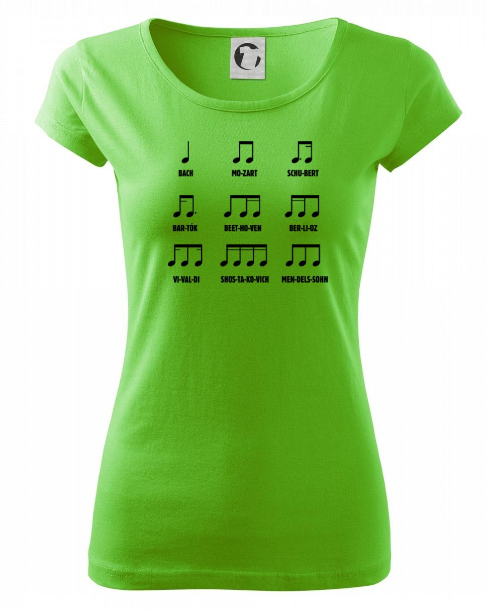 Pamatujete si noty ještě ze školy, nebo jste začínající skladatelé a umíte je nazpaměť? Oslnit můžete v našem triku, tílku, mikině nebo sukni. A ani Váš mrňous nezůstane pozadu, když mu pořídíte bodýčko, nebo tričko s tímto hudebním motivem.