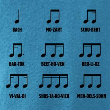 Pamatujete si noty ještě ze školy, nebo jste začínající skladatelé a umíte je nazpaměť? Oslnit můžete v našem triku, tílku, mikině nebo sukni. A ani Váš mrňous nezůstane pozadu, když mu pořídíte bodýčko, nebo tričko s tímto hudebním motivem.