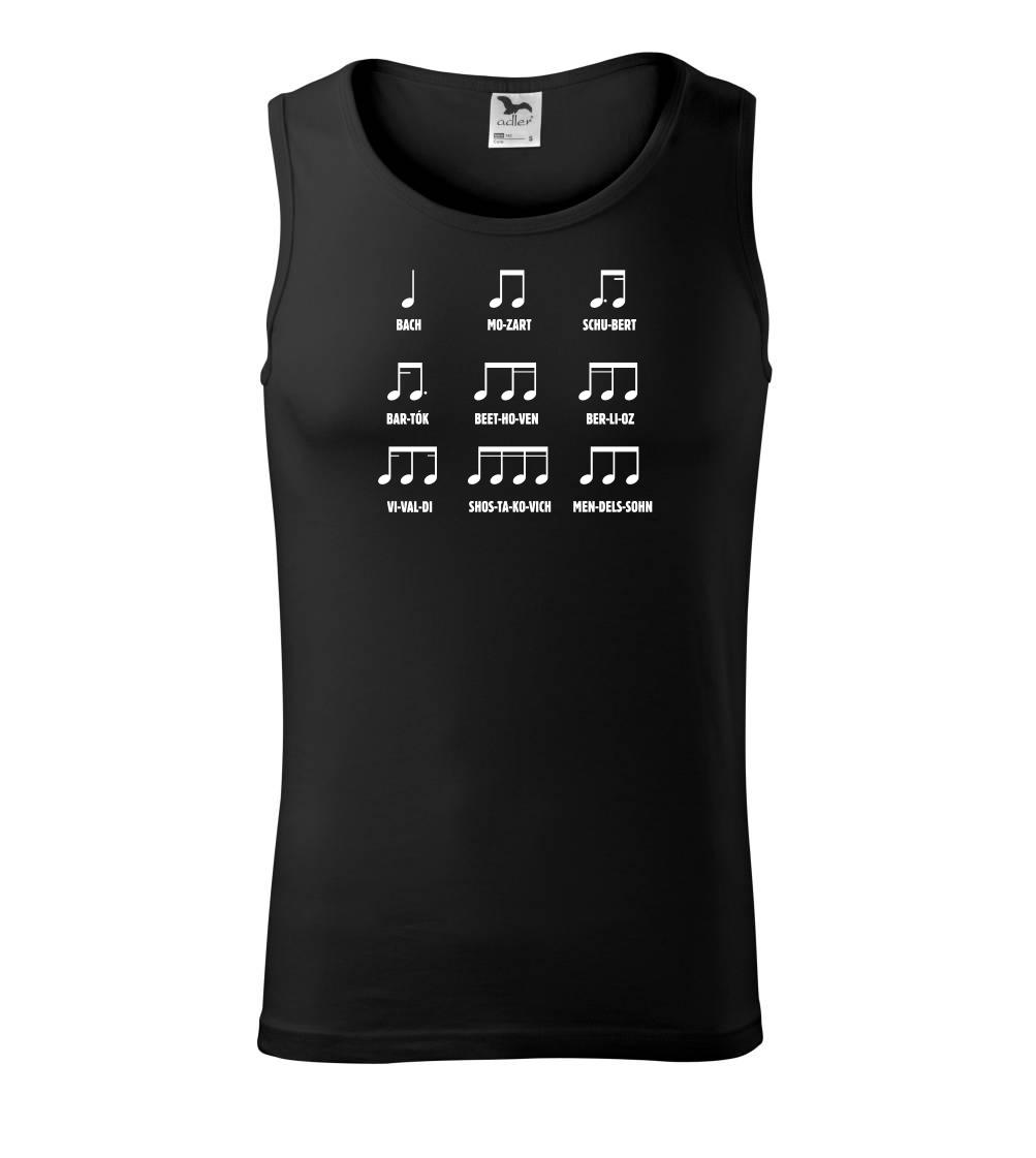 Pamatujete si noty ještě ze školy, nebo jste začínající skladatelé a umíte je nazpaměť? Oslnit můžete v našem triku, tílku, mikině nebo sukni. A ani Váš mrňous nezůstane pozadu, když mu pořídíte bodýčko, nebo tričko s tímto hudebním motivem.