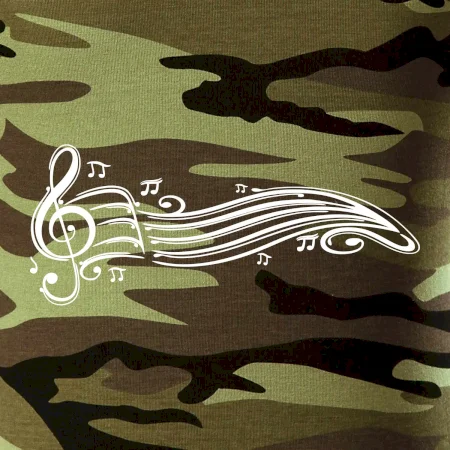 Tričko střední gramáže v barvách camouflage. Střih s bočními švy. Lem průkrčníku ze žebrového úpletu s přídavkem 5 % elastanu. Vnitřní část zadního průkrčníku začištěna páskou v barvě camouflage.