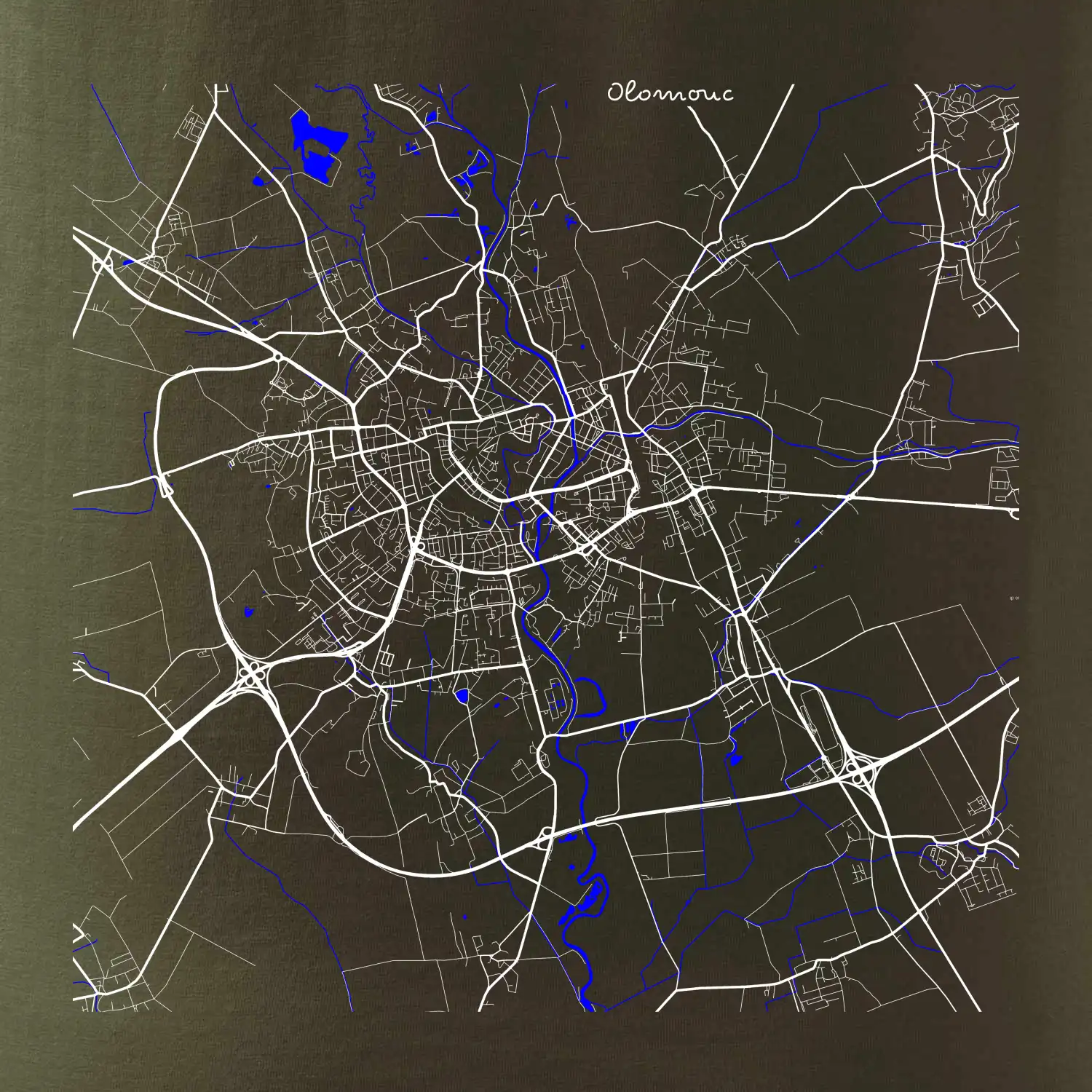 Olomouc - Mapa s vodními toky