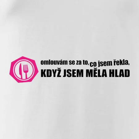 Vtipné triko pro hladovou holku. Triko pro holku s nápisem "Omlouvám se za to, co jsem řekla, když jsem měla hlad".