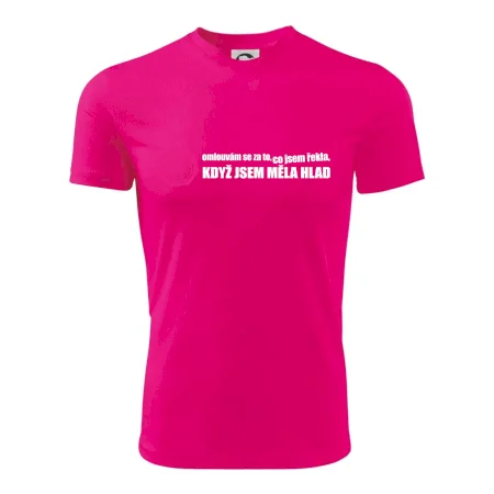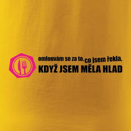 Vtipné triko pro hladovou holku. Triko pro holku s nápisem "Omlouvám se za to, co jsem řekla, když jsem měla hlad".