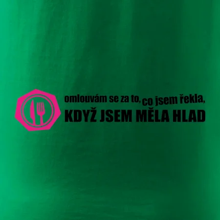 Vtipné triko pro hladovou holku. Triko pro holku s nápisem "Omlouvám se za to, co jsem řekla, když jsem měla hlad".