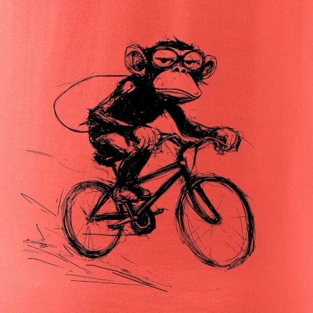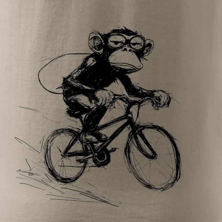 Opice s batohem na kole