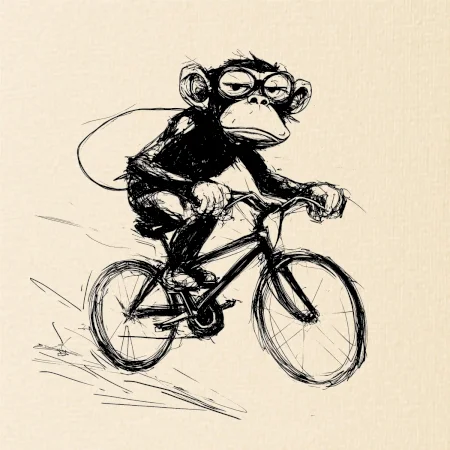 Opice s batohem na kole