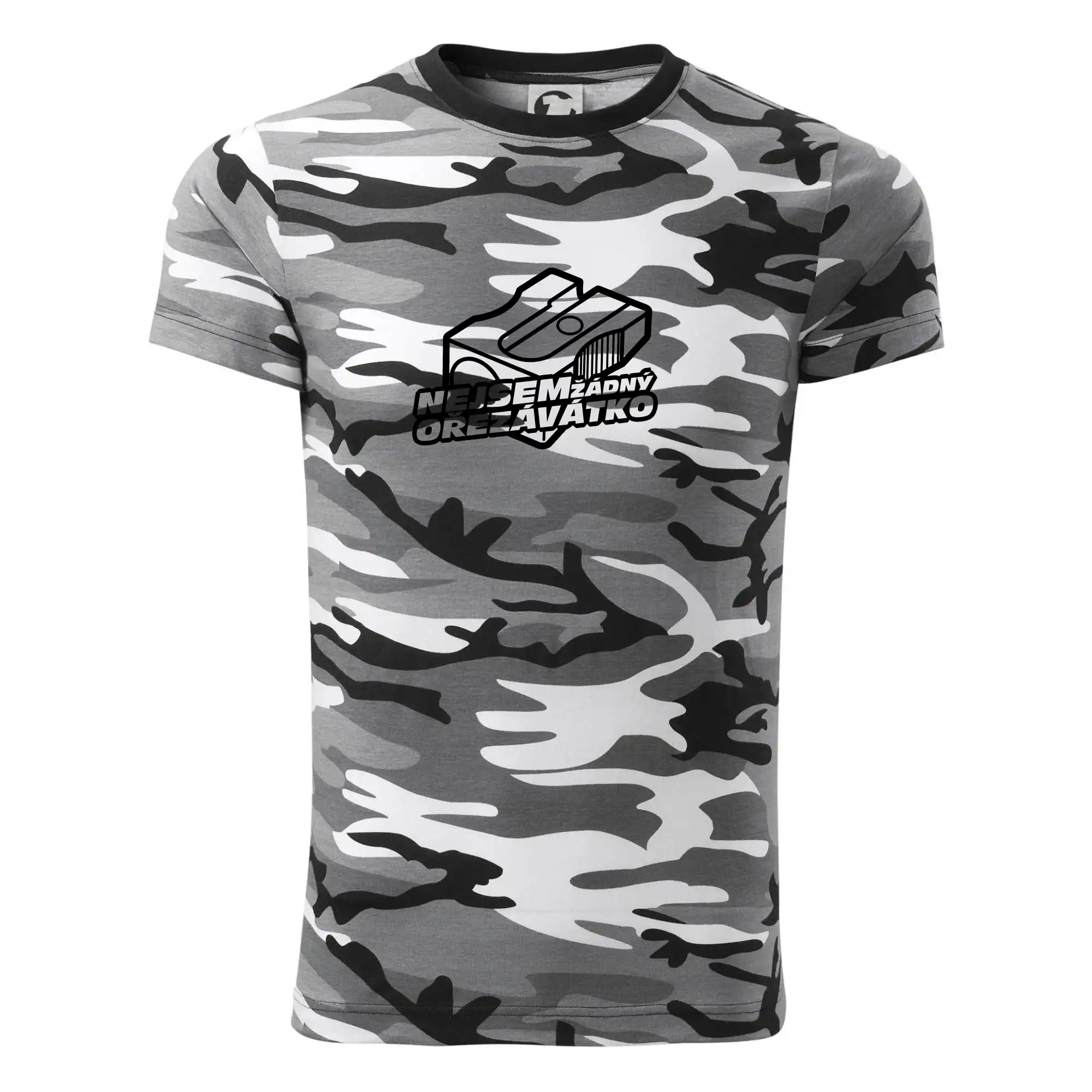 Tričko střední gramáže v barvách camouflage. Střih s bočními švy. Lem průkrčníku ze žebrového úpletu s přídavkem 5 % elastanu. Vnitřní část zadního průkrčníku začištěna páskou v barvě camouflage.