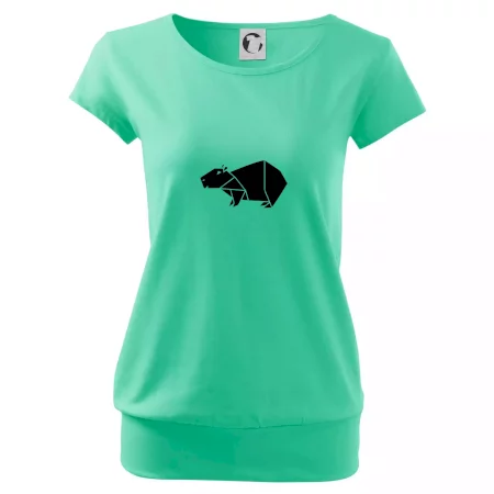 Trendové dámské triko s velmi krátkým rukávem, volnějšího střihu, v dolním kraji všité do širokého lemu. Kulatý průkrčník s úzkým lemem ze shodného materiálu.