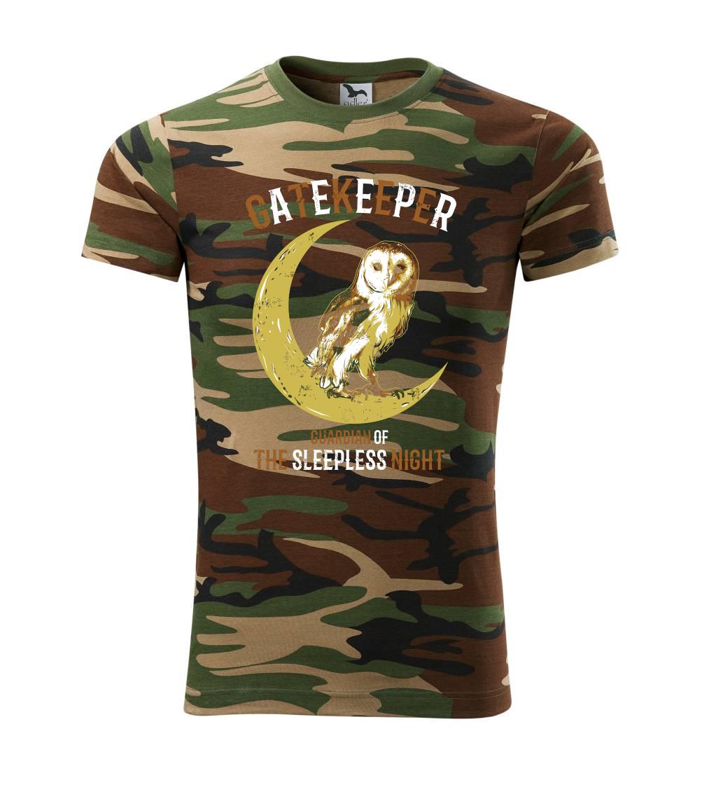 Tričko střední gramáže v barvách camouflage. Střih s bočními švy. Lem průkrčníku ze žebrového úpletu s přídavkem 5 % elastanu. Vnitřní část zadního průkrčníku začištěna páskou v barvě camouflage.
